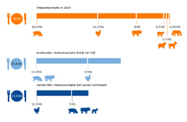 De huidige consumptie van kippenvlees ligt redelijk in lijn met de aanbevolen dagelijkse hoeveelheid.